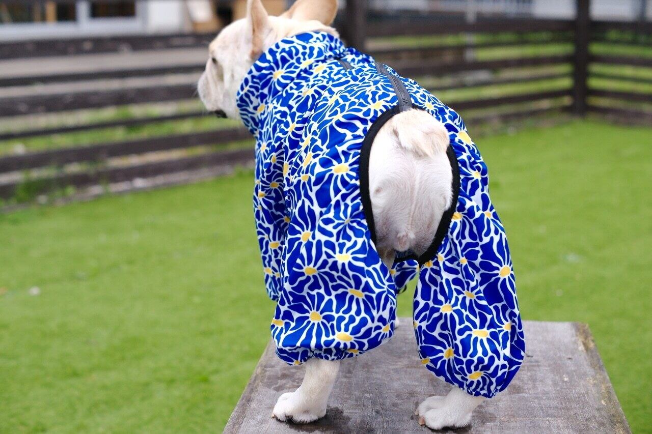 着方としては、まず、フードをかぶってから、前足、次に後ろ足、最後にチャックで締めるような作りになっております。